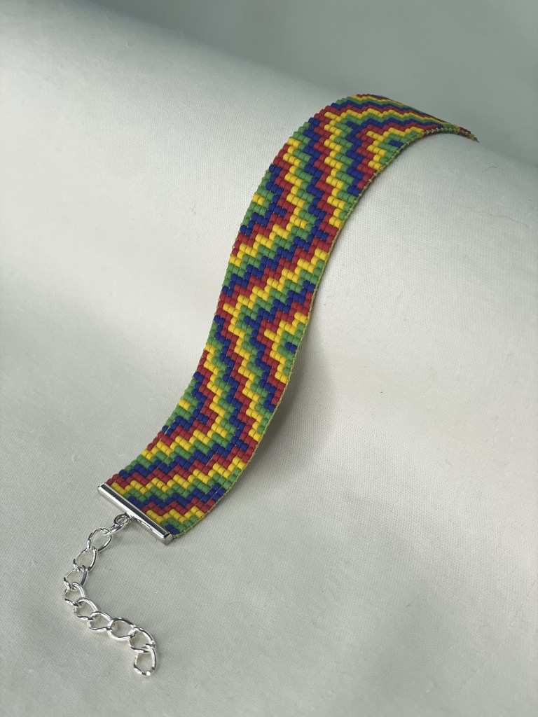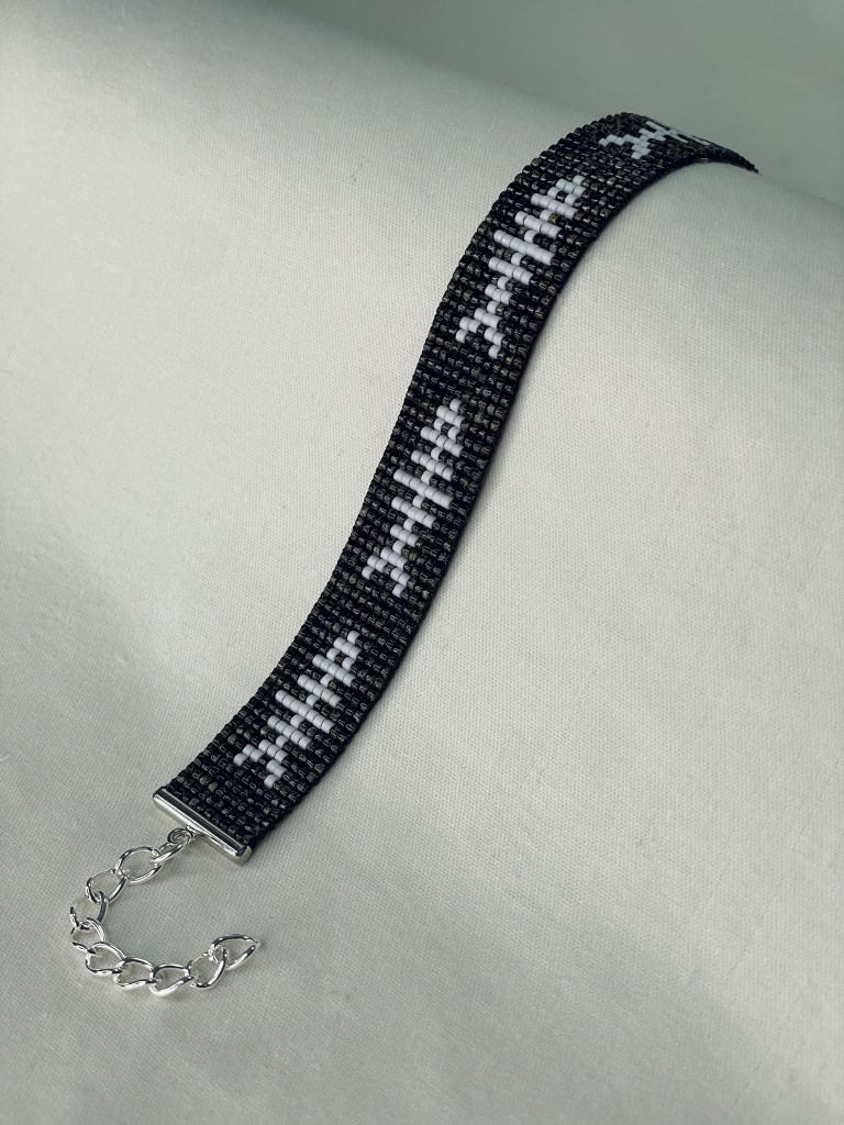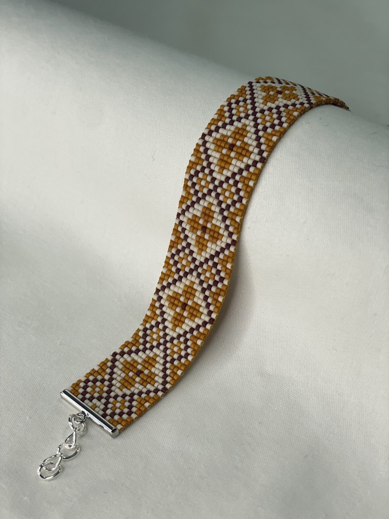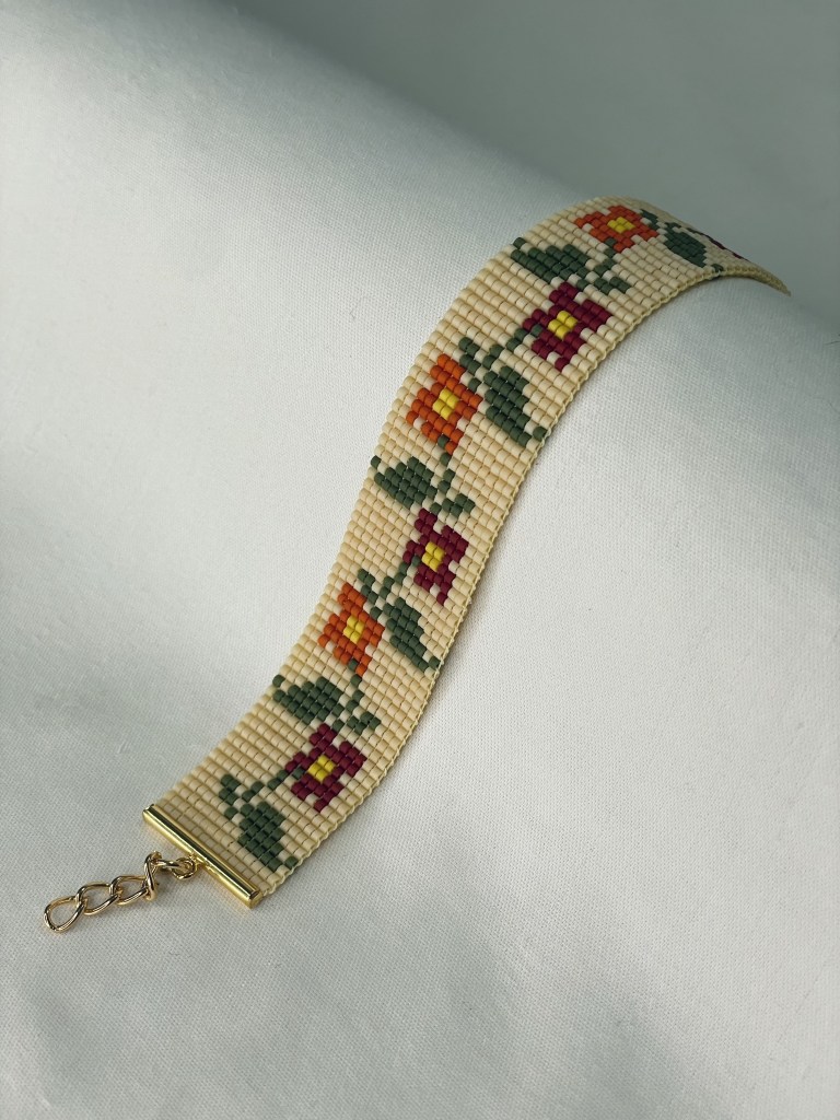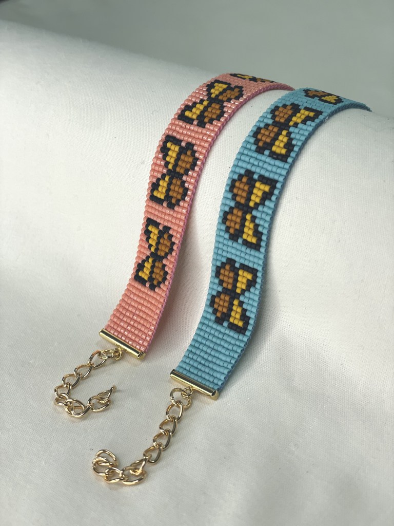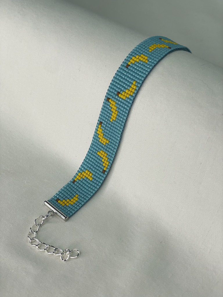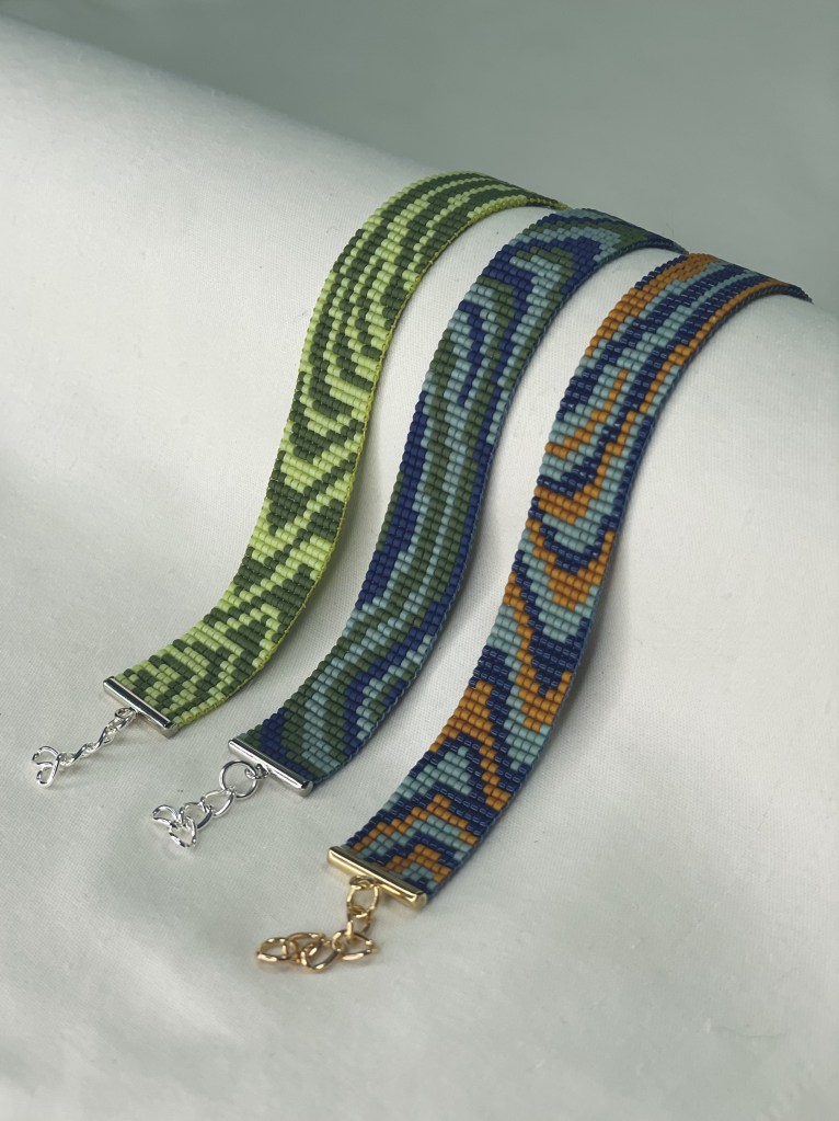 Lily first tried bead weaving with her dad when she was 10 years old. In 2023 Lily revived her passion for the art. Each bracelet is made of 600-1400 tiny beads and takes multiple hours to complete. Bracelet designs are endless, including geometrical patterns, objects, animals, flowers, symbols and words. Bracelets can be purchased from Lily’s Etsy.