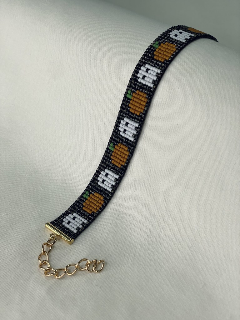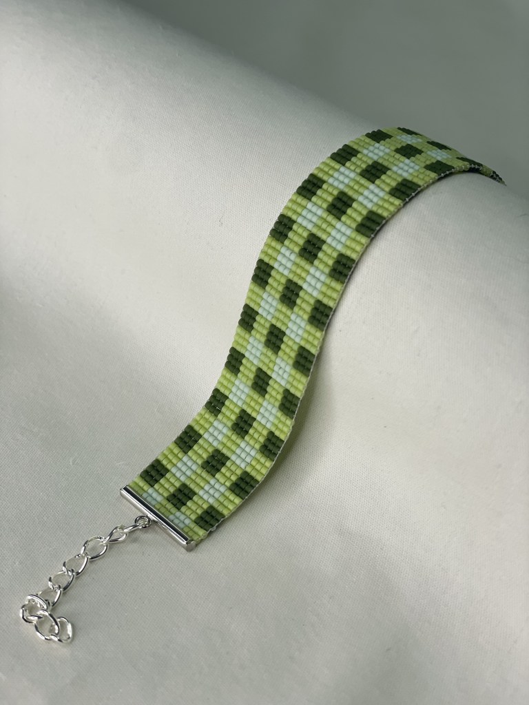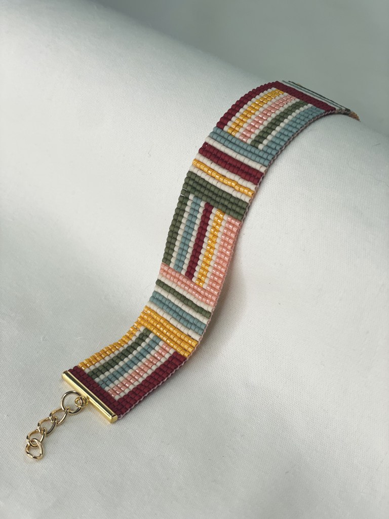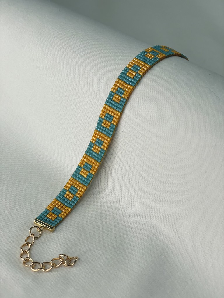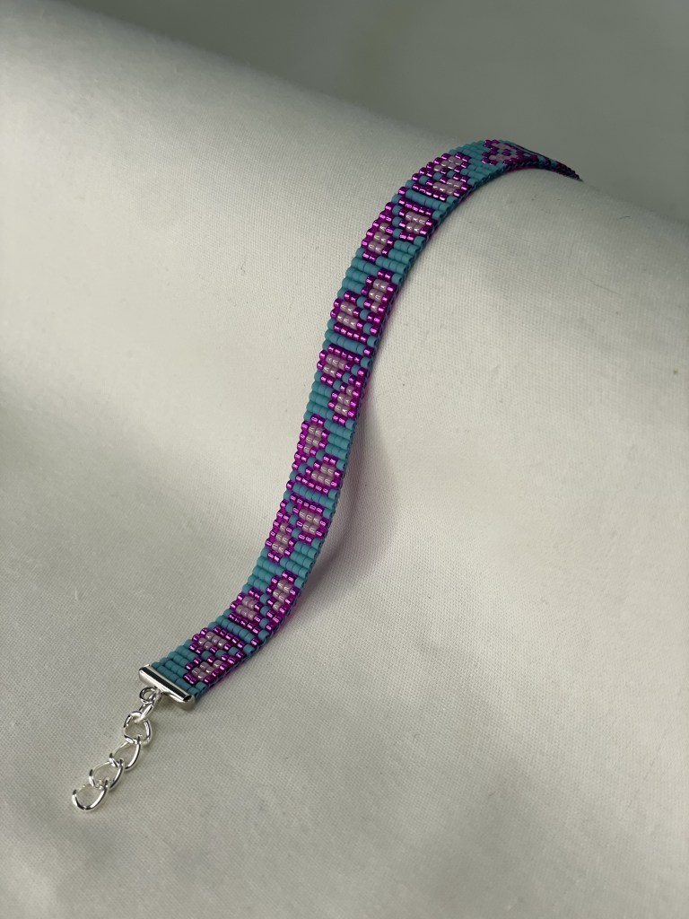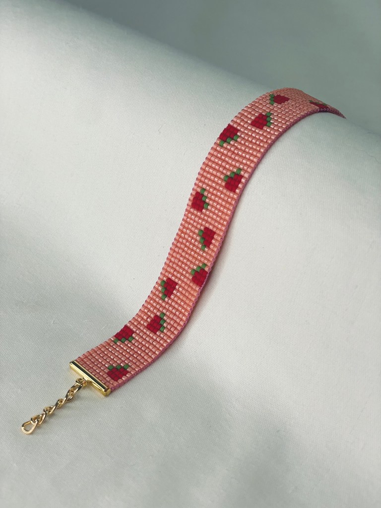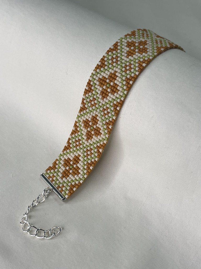 Lily first tried bead weaving with her dad when she was 10 years old. In 2023 Lily revived her passion for the art. Each bracelet is made of 600-1400 tiny beads and takes multiple hours to complete. Bracelet designs are endless, including geometrical patterns, objects, animals, flowers, symbols and words. Bracelets can be purchased from Lily’s Etsy.