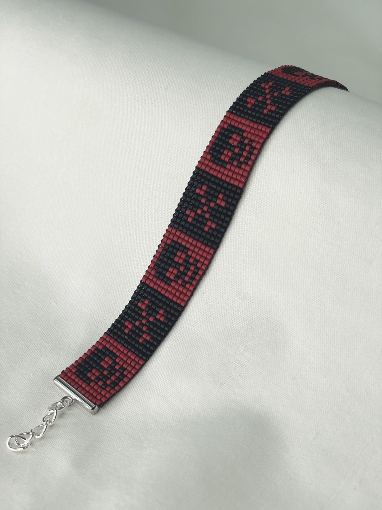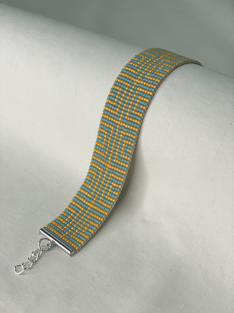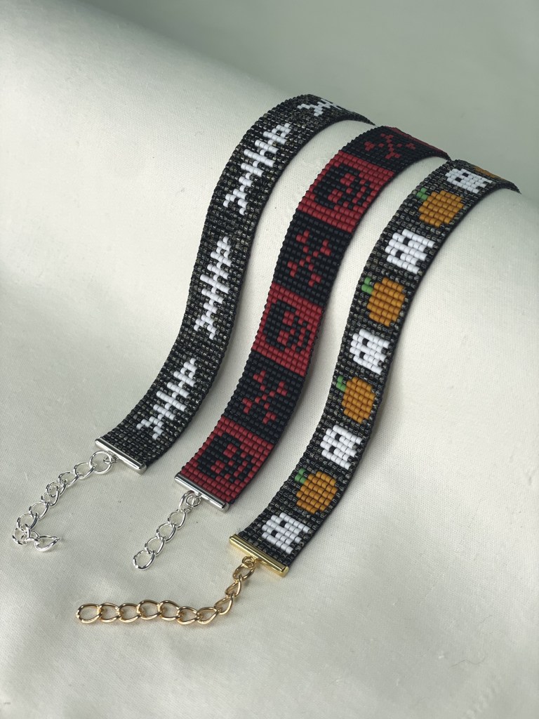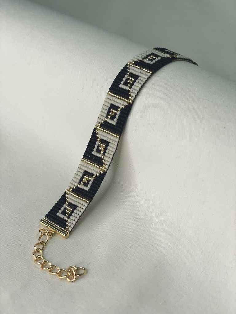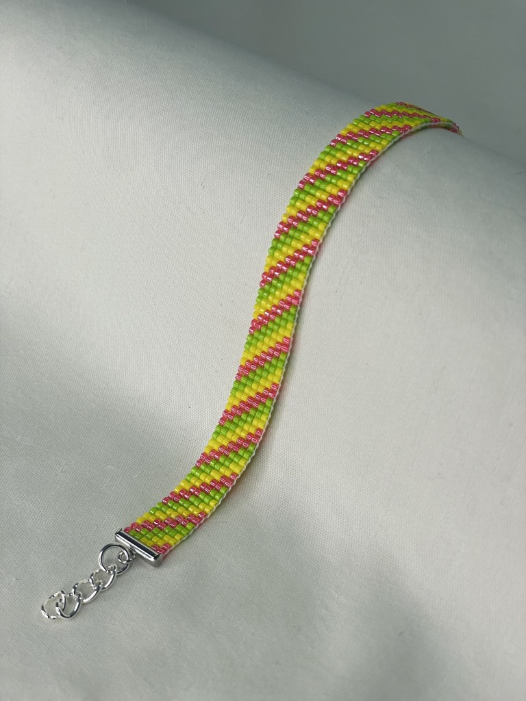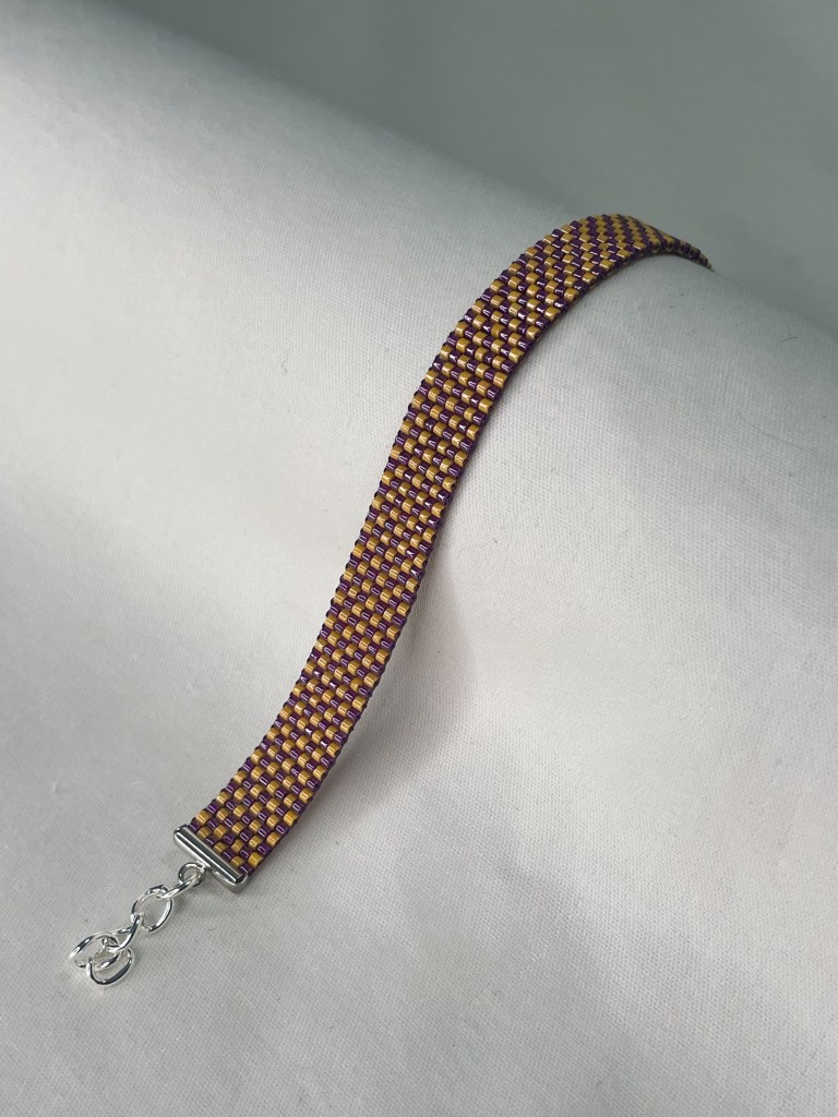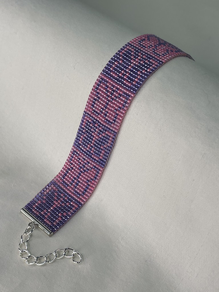 Lily first tried bead weaving with her dad when she was 10 years old. In 2023 Lily revived her passion for the art. Each bracelet is made of 600-1400 tiny beads and takes multiple hours to complete. Bracelet designs are endless, including geometrical patterns, objects, animals, flowers, symbols and words. Bracelets can be purchased from Lily’s Etsy.